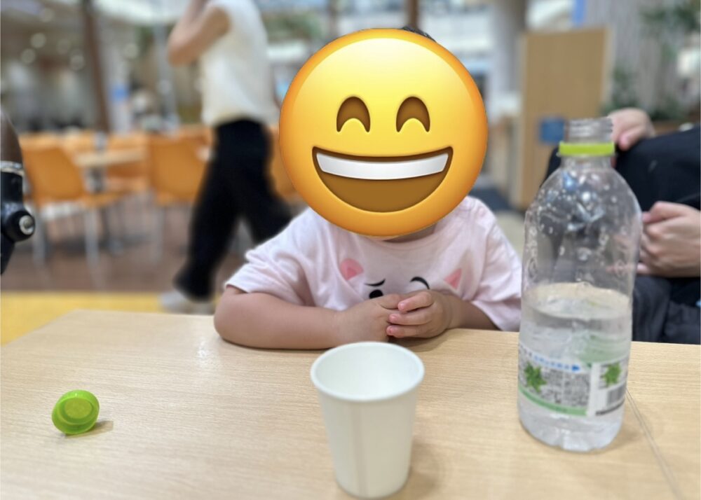この日はファミリーエリアが空いていたので座ろうとしましたが、身長90cm以下の娘には少し椅子が低かったので、結局ふつうのテーブルへ。